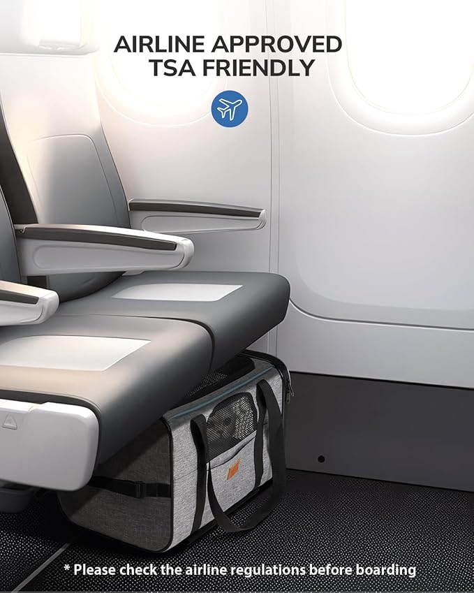 - 【 Pet Carrier Airline Approved 】Our pet carrier with wheels meets major airlines' standards, fitting easily under front cabin seats once wheels or the bottom panel are removed (please confirm with the airline beforehand). This cat carrier easuring 17" long x 11" wide x 11" high, it comfortably accommodates pets up to 14lbs – refer to length and height for a perfect fit.