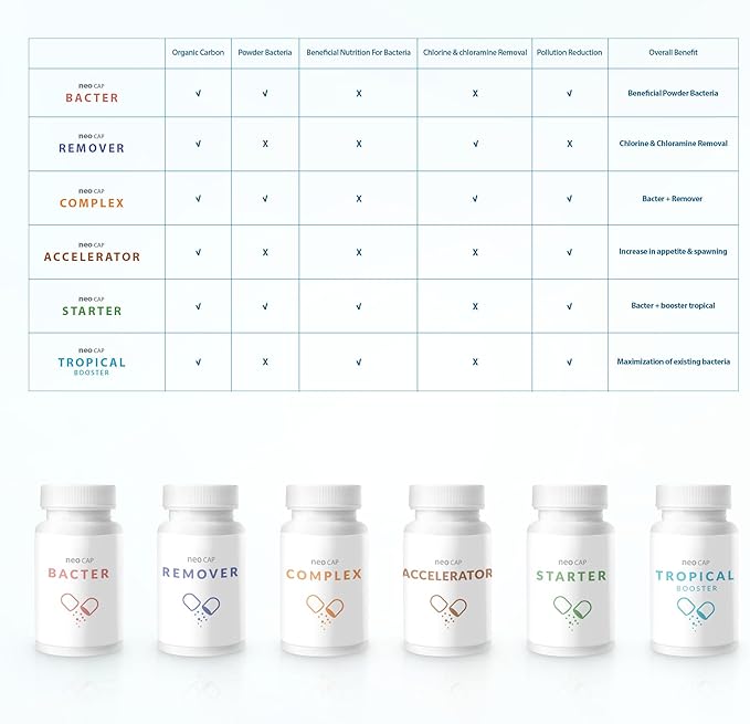 Neo Cap - Water Conditioner for Aquarium Tank - Enhances Biological Filtration, Improves Water Quality, Safe for Freshwater & Saltwater - Bacter, 20 Capsules