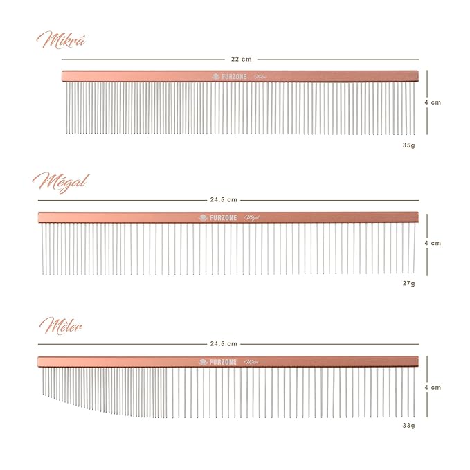 • 2-IN-1 COMB: Furzone high-quality, durable comb designed with two sides - fine and medium, enables you to groom or brush your pet. It is also the ideal size for fine combing around the face and head: 8.66 inches long (22cm) and 1.54 inches (3.9cm) wide.