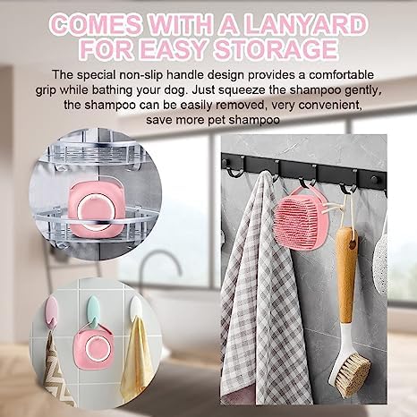 - Quick Dry and Save Space - A hang hole design allows the multi-functional pet grooming brush to be easily hanged to dry after use, saves space. However, please pour out the excess water and show gel to avoid the soap leak out.