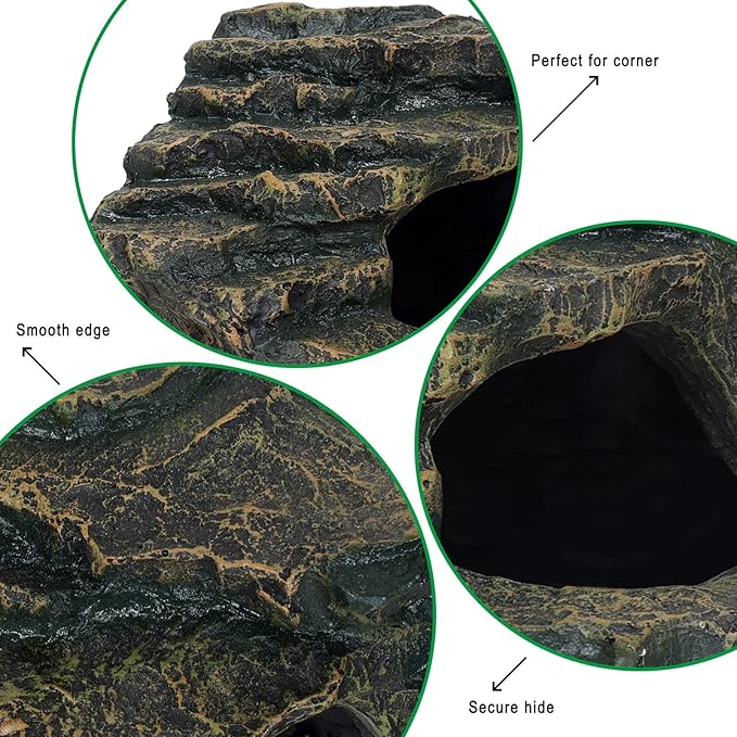 - SUIT FOR aquatic turtle tank accessories and fish tank accessories: designed turtle or fish hideout for aquatic and terrestrial environments, perfect for snake climbing accessories and tortoise habitat accessories offer versatility. Ideal for aquarium cave and snake tank accessories,snake hide or reptile hide, ensuring a private and natural environment for your pets.