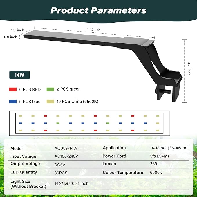 - Essential Clip On Aquarium Light: Light is made of aluminum alloy material and high brightness 5730 lamp beads; bracket material is sturdy ABS; The lamp panel is filled with glue to increase the waterproofing of the lamp; best partner for fish tanks
