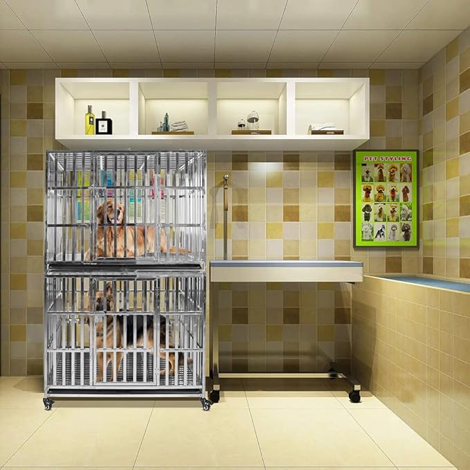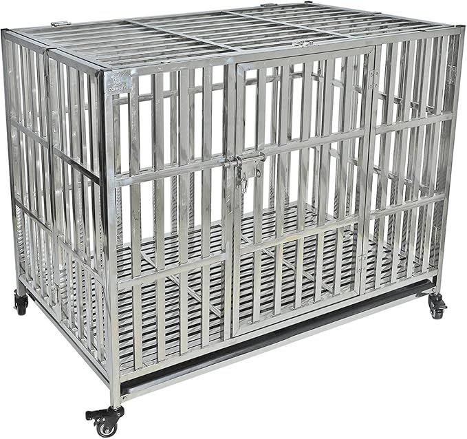 - Easy to Install & Clean: Our heavy duty dog kennel is shipped partially assembled.You just need to screw together the parts to install it. In addition,removable plastic bottom allows you to wipe and clean easily. It is made of stainless steel. That meams super easy to clean and not rust worry abouts.