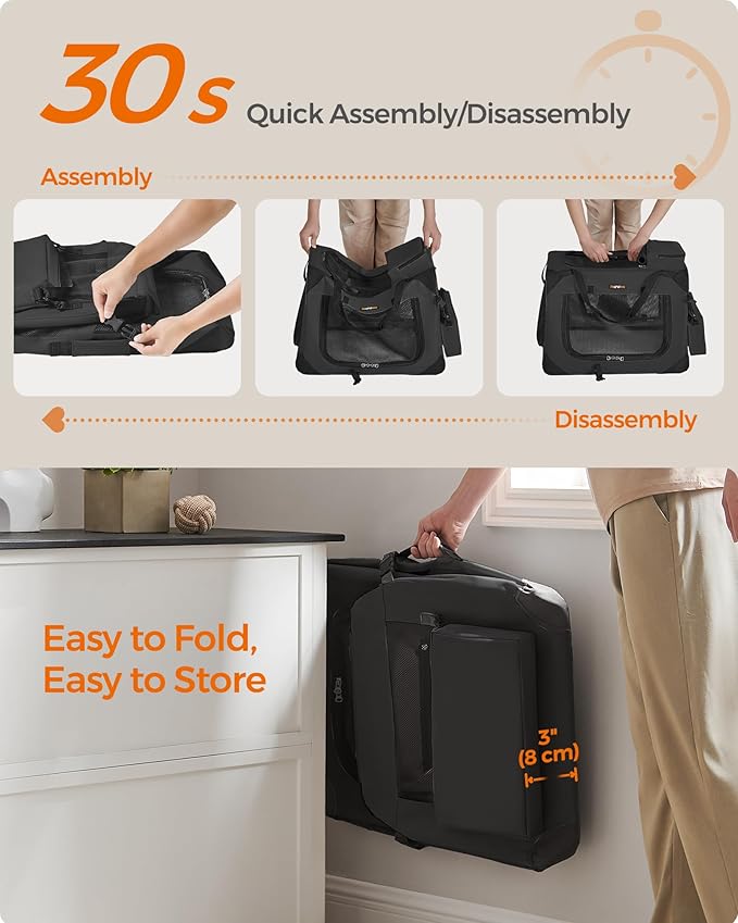 Feandrea 28 Inches Collapsible Soft Dog Crate, Portable Travel Dog Crate for Indoor and Outdoor Use, Dog Carrier Kennel with Safety Zippers, for Living Room, Car, Travelling, Black UPDC70H