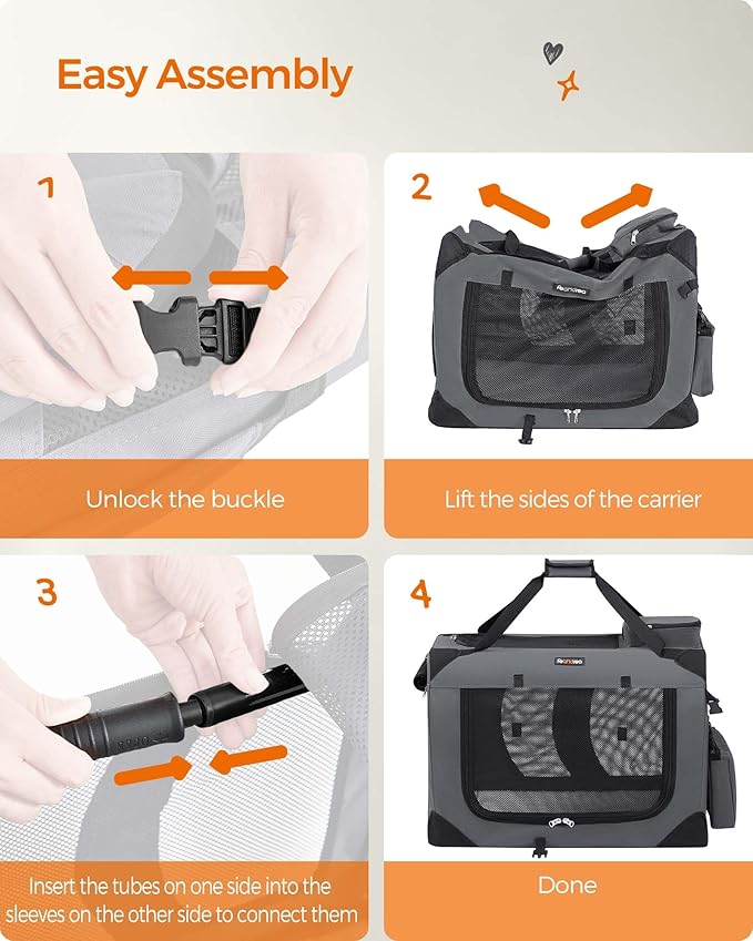 - _NTI-ESCAPE & STRONGER_eaturing self-locking zippers that ensure pets can't open it from the inside, the travel dog crate enhances safety while traveling. The thick steel frame and Oxford fabric are scratch- and tear-resistant for prolonged service life