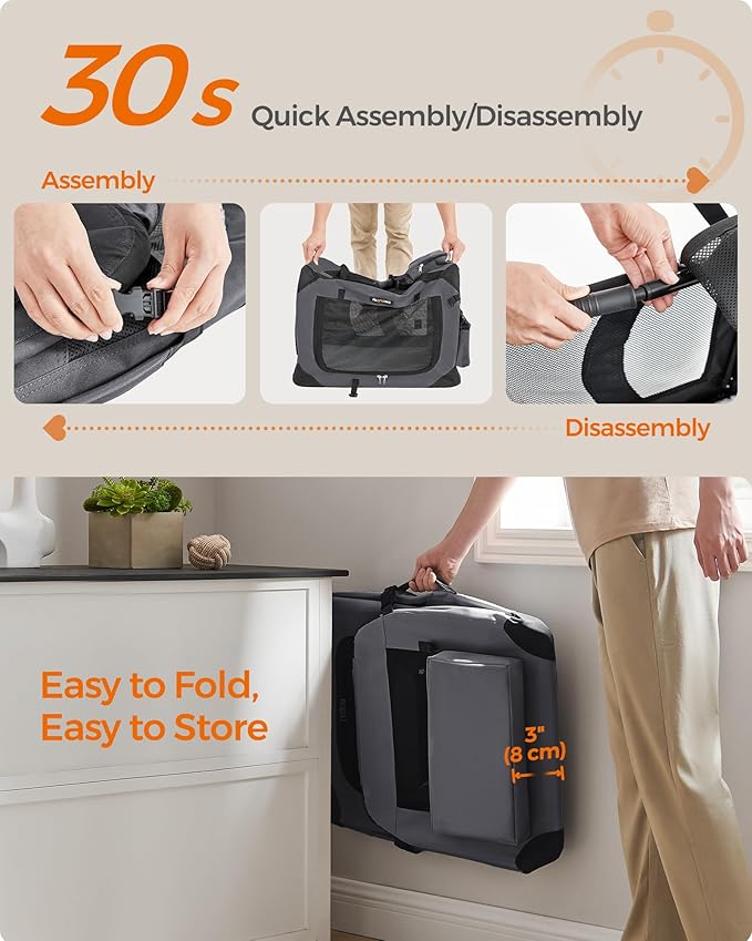 Feandrea 28 Inches Collapsible Soft Dog Crate, Portable Travel Dog Crate for Indoor and Outdoor Use, Dog Carrier Kennel with Safety Zippers, for Living Room, Car, Travelling, Camping, Gray UPDC70GY