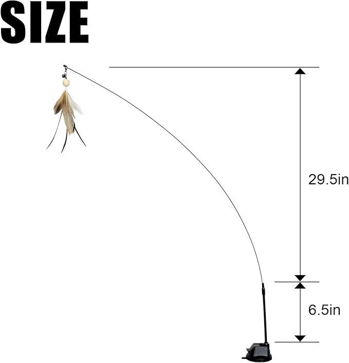 - 【Wire fishing rod design】 This cat fishing rod toy is very light, flexible and easy to store. The fully extended cat toy stick is long enough (35 inches) to cover a lot of play space and it really gives your cat a workout. And it's light, so teasing cats is no longer a tough job for you.