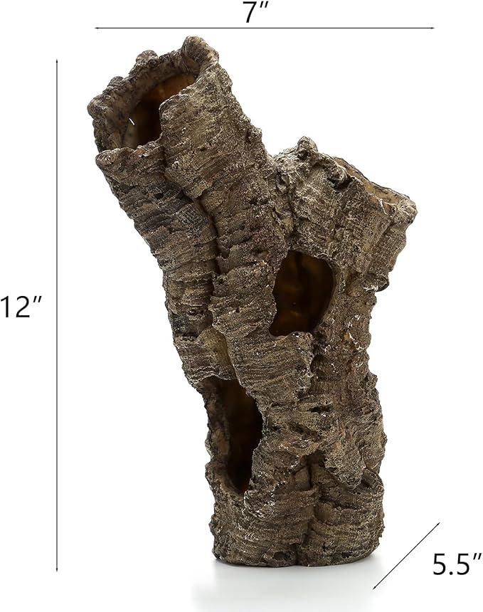 - Made of safe, environmentally-friendly polyresin that will not affect your pet’s health. Designed with the shape of a tree hole, it has the appearance of tree bark and is a very beautiful aquarium decoration.