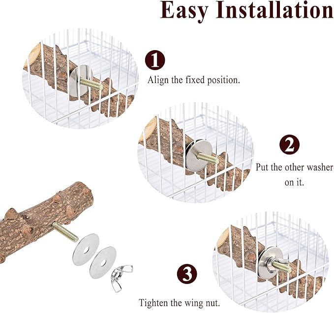 - Easy Installation: Parrot perch stand is designed with a flexible single-lock removal method, which can be installed inside or outside of any cage. Built-in wing nuts and bolts, easy to install and very sturdy, bird perch is a great cage accessory for your favorite pet to play with peace of mind and safety.
