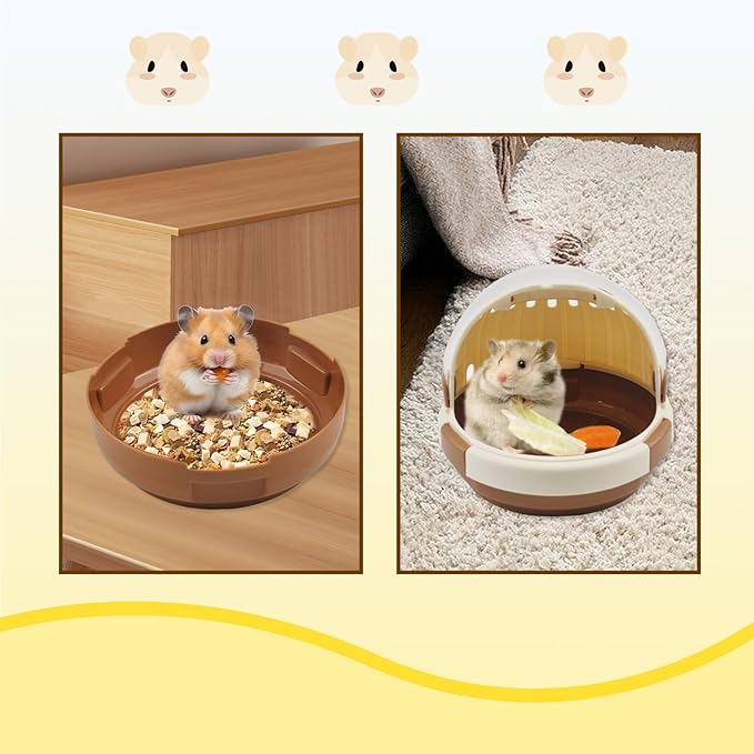 - Ventilation:The ventilation design at the top of the hamster cage increases air circulation,allowing your hamster to breathe smoothly and freely,Travel is more reassuring, meeting the natural exploration and hiding needs of hamsters