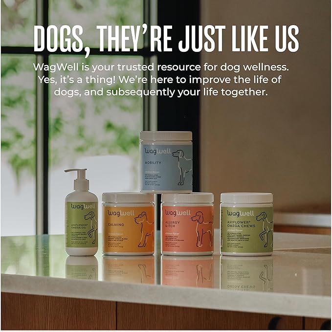 WagWell Ahiflower Omega Oil - Vet-Formulated Skin, Coat, Hip and Joint Supplement for Dogs - Plant-Based Omega 3, 6 and 9 Supplement - Natural Non-GMO Dog Omega Oil, 8 fl.oz. Pump Bottle