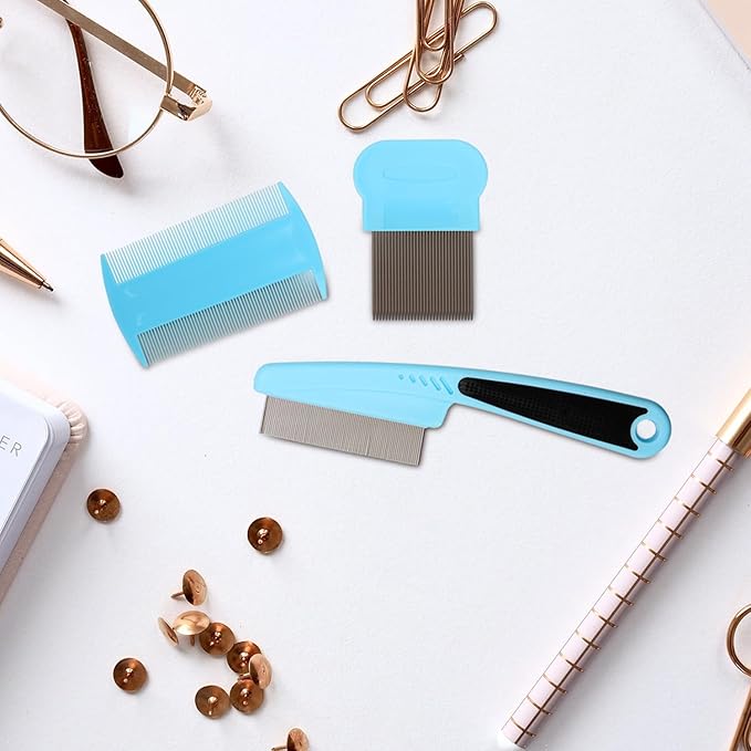 3 Pack Flea & Lice Combs for Dogs, Cats & Small Pets - Grooming Tool for Eye Tear Stains