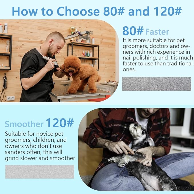 • Easy to Use: With the grinder, you can easily control the speed and smoothness of sanding. Let dog enjoy the fun of nail polishing. Don't forget to reward your dog for completing the grooming