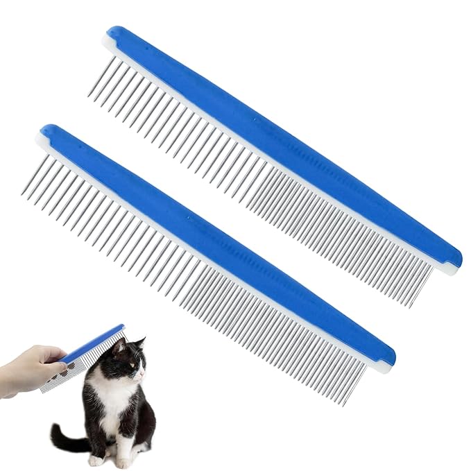 2Pcs Dog Grooming Comb, Durable and Non-Slip Metal Comb for Dogs, Horse, Rabbit, Cat, Metal Pet Comb for Cats with Rounded Tips for Bath, Pet Hair Remover, Removes Tear Stain, Tangles, and