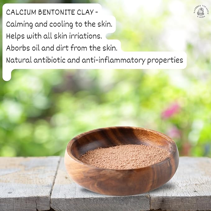 - Calcium Bentonite Clay - Calming and cooling to the skin, absorbs oil and dirt.