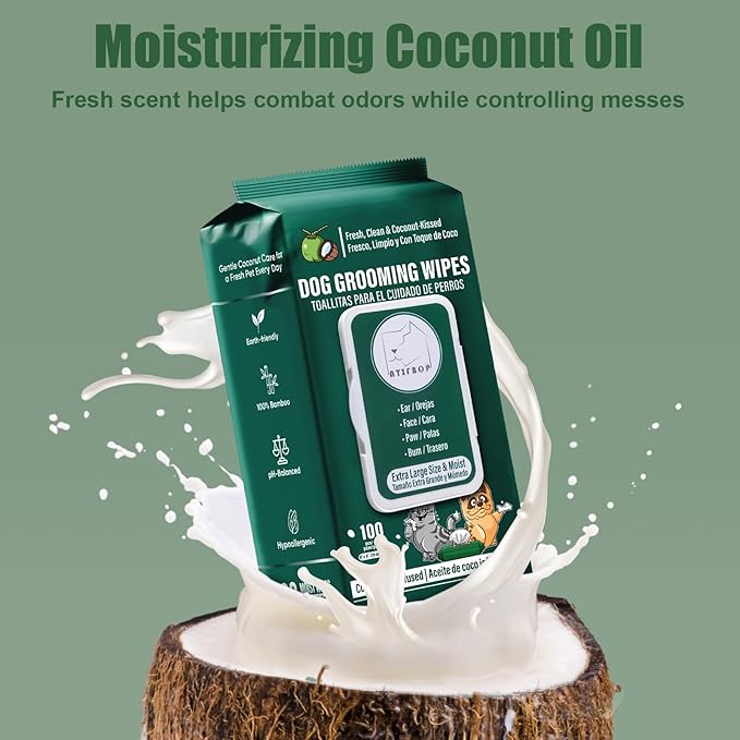 • Coconut Oil - With bamboo fiber and coconut oil, this dog wipes cleaning deodorizing effectively removing dirt and odors. Coconut oil moisturizes every inch of your dog and cat.