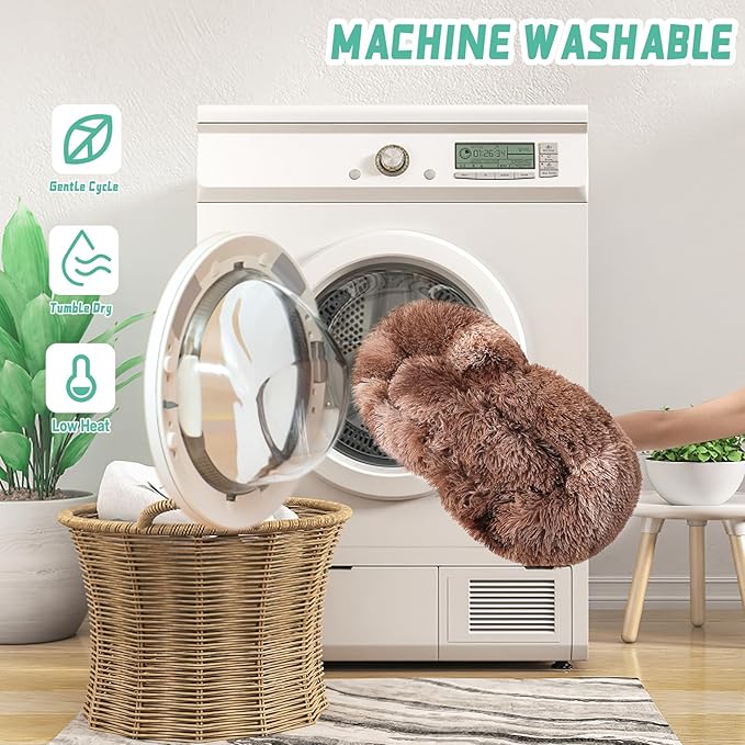 - ✔ Machine Washable for Easy Cleaning: Made with durable nylon and luxurious faux fur, this bed is both practical and comfortable. It’s filled with premium materials and is machine washable (gentle cycle) and dryer-safe (low heat), making it a breeze to keep fresh and free of pet hair or odors. (Pro tip: Avoid air-drying to prevent fur tangling.)