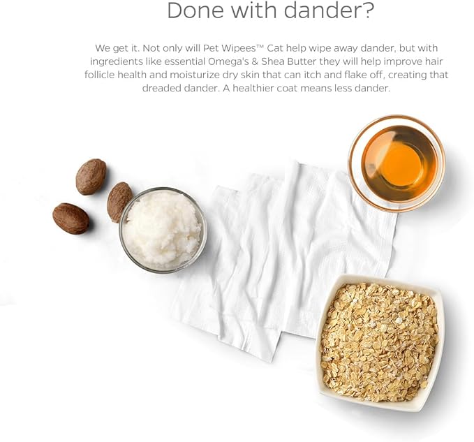 - TARGETED, BIO-BASED INGREDIENTS: More than just soap and water, Pet WiPees Cat All Purpose are wipes for cats formulated with targeted ingredients that can help prevent against irritants while gently cleansing and moisturizing the skin and coat. Ingredients like salmon oil for cats, vitamin E, and shea butter work together to promote healthy skin cell growth, repair the coat, and help to reduce dander.