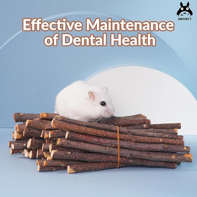 - 【Suitable for Different Pets】The rabbit chew toy is made from natural apple sticks and has a unique hardness and aroma that will satisfy the teething needs of a variety of small animals. Whether your pet is a rabbit, guinea pig, hamster, chinchilla, chipmunk or gerbil, they can keep their teeth clean and healthy by chewing on the apple stick to grind away dirt and excess keratin.