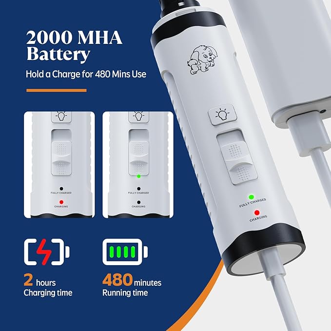 YABIFE Whisper Quiet Dog Nail Grinder, Dog Nail Trimmers Kit for Grooming, Electric Pet Nail File, Dual Lights for Quick Location, 2 Speeds, for Puppy, Small Medium Large Dogs and Cats