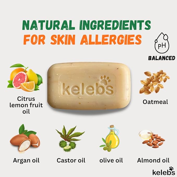- Anti-Itch: Our dog soap is specially formulated for pets with allergies and sensitive skin. It contains castor oil, oatmeal, and natural citrus oils to soothe itchy patches of skin and deeply cleanse your pet’s coat. This is the best dog shampoo for allergies and itching.