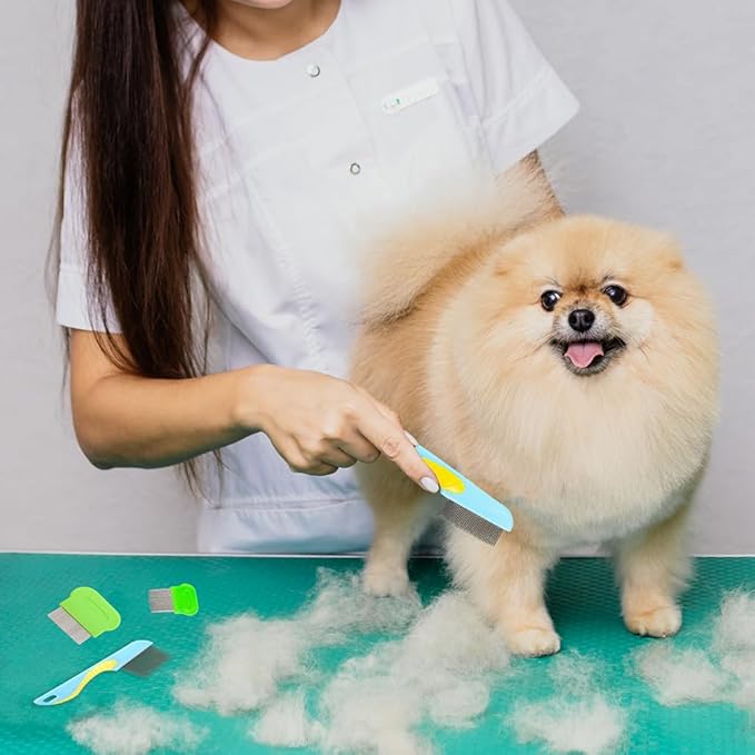 5pcs Flea Comb,Dematting Comb for Dog and Cat,Stainless Steel Teeth Head Nit Comb for Small,Medium&Large Pets,Lice Combs,Tick Comb for Dogs,Dog Combs for Grooming(A-blue green white)