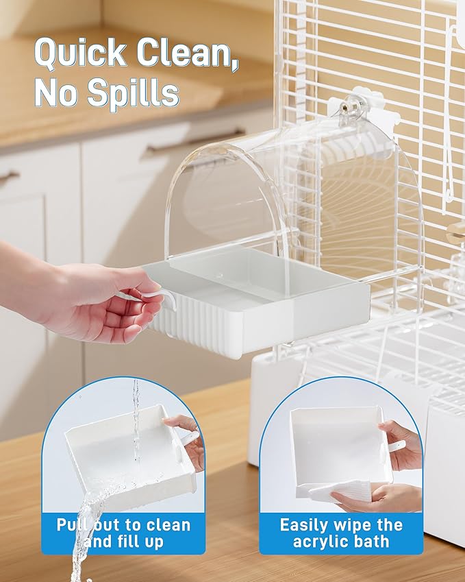 - Safe & Durable: Made with thick, sturdy AS material, this parakeet bath is built to last—no worries about water leaks or your bird's safety!