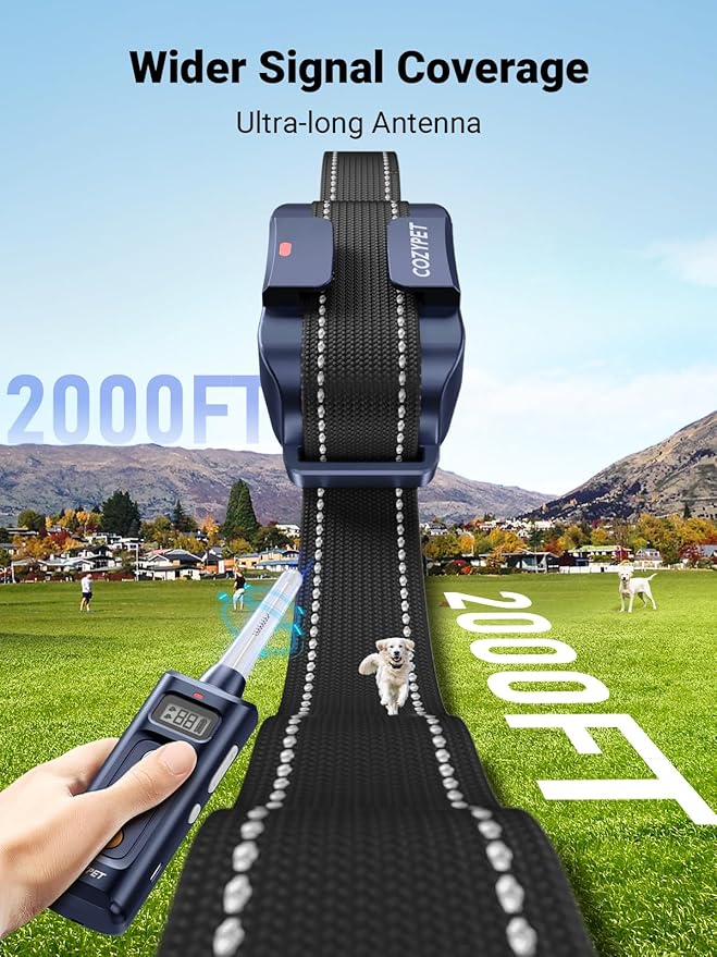 - ADJUSTABLE COLLAR & 2000 FEET LONG REMOTE RANGE: The adjustable collar length ranges from 7 to 23 inches, suitable for dogs of various sizes, ensuring comfort and weighing only 0.2 pounds, so it won't burden your dog. The remote range extends up to 2000 feet, allowing you to easily train your dog whether in the backyard, park, or beach. Everything is within your control.