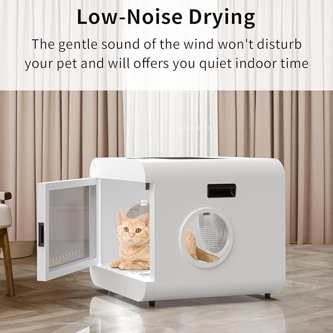 - 【The Ultimate Drying Scheme】 The automatic cat dryer box provides three -gear wind drying mode. You can customize the drying time, temperature to ensure a uniform and fast drying experience, save your time and free your hands.
