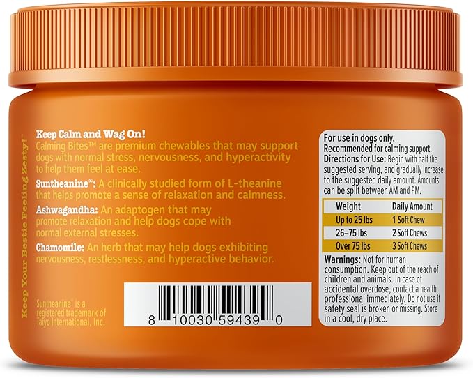 - CLINICALLY STUDIED INGREDIENTS: The dog calming treats feature Suntheanine, a premium form of L-Theanine that helps promote relaxation and calmness in your pup