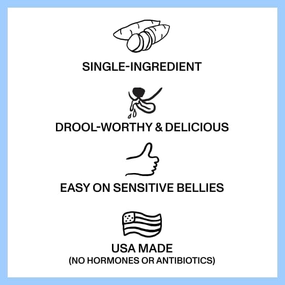 • Reward: Sweet Potato Bites are the perfect way to celebrate your dog at the end of a great training session (or just to see some happy wiggles)