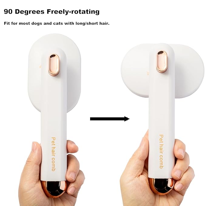 - 【One-click Cleaning Button】-After brushing your pet, simply click the button, saves your shedding time. Regular use of this pet brush will keep your pet's hair clean and smooth. The head of brush can be swiveled 90 degrees, designed for short, medium or long, thick dogs/cats, making your pets healthy, gently removes undercoat and loose hair.