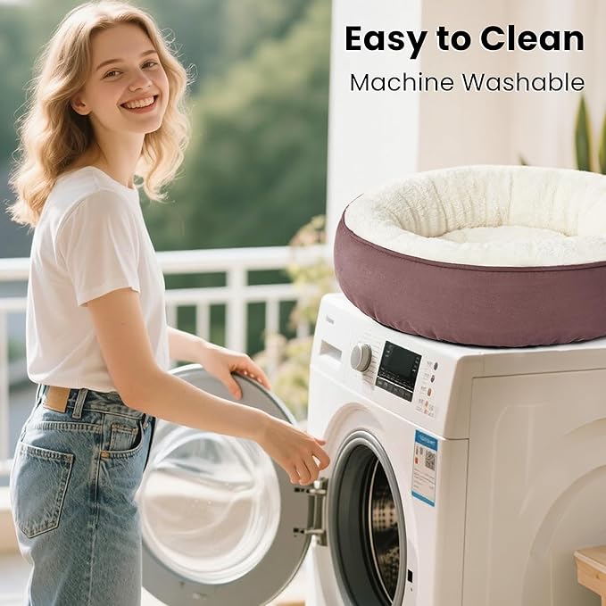 Love's cabin Donut Pet Bed, 25in, Burlwood, for Small Dogs & Cats, Soft Durable Fabric, Anti-Slip, Water-Resistant, Washable