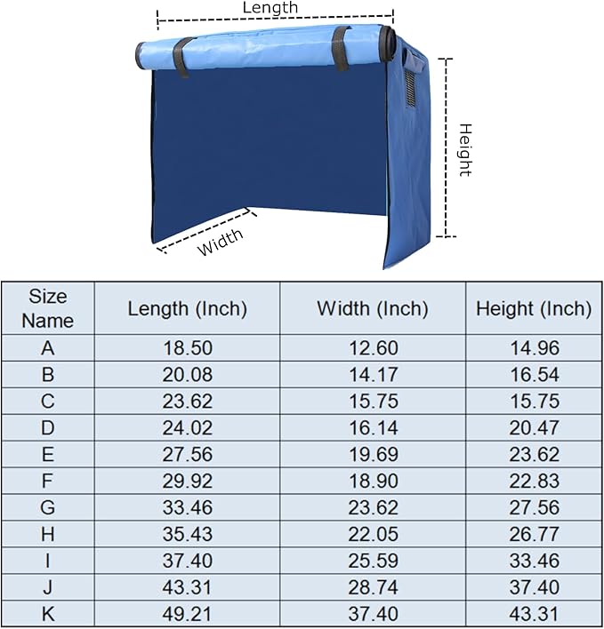 - Dimension: The pet crate cover size (LxWxH) 18.50x12.60x14.96 Inch; 20.08x14.17x16.54 Inch; 23.62x15.75x15.75 Inch; 24.02x16.14x20.47 Inch; 27.56x19.69x23.62 Inch; 29.92x18.90x22.83 Inch; 33.46x23.62x27.56 Inch; 35.43x22.05x26.77 Inch; 37.40x25.59x33.46 Inch; 43.31x28.74x37.40 Inch; 49.21x37.40x43.31 Inch.