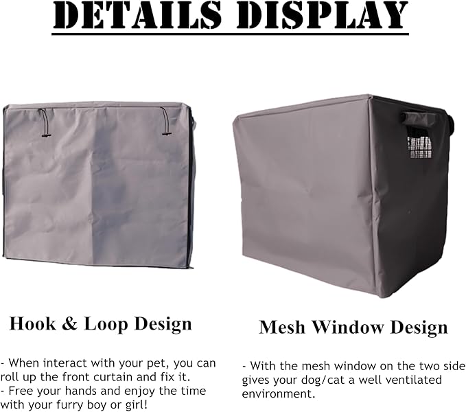 - 1 Door Crate Cover: When interact with your pet, you can roll up the front curtain of the crate door and fix it with strings. Hands free and enjoy the time with your furry boy or girl! Universal fits for most dog wire crates.