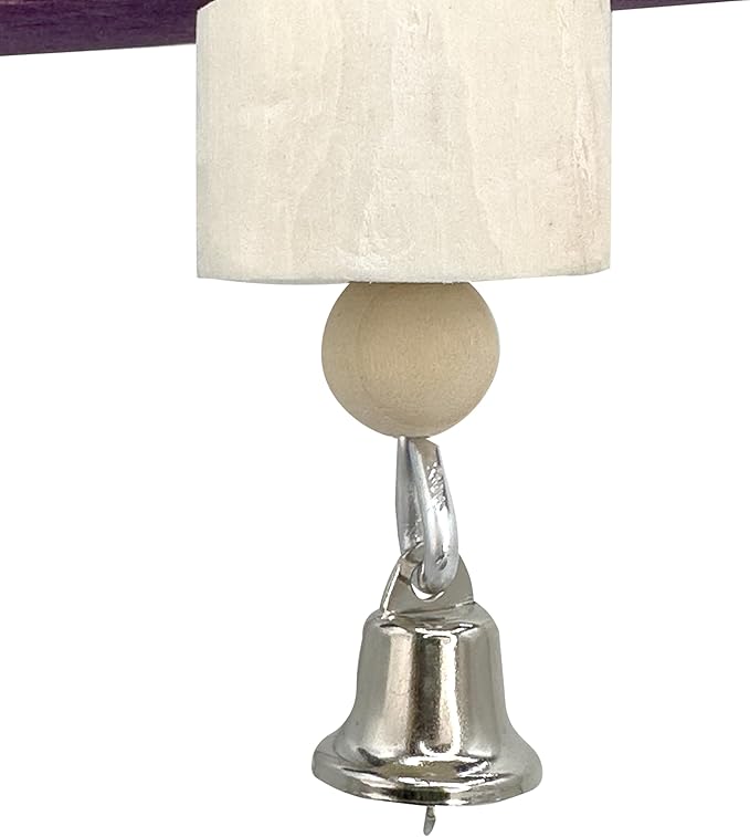 - On the bottom there is another wood bead, sola cube and a small metal bell. As the metal wire passes through the toy’s center all the parts can turn around their center.