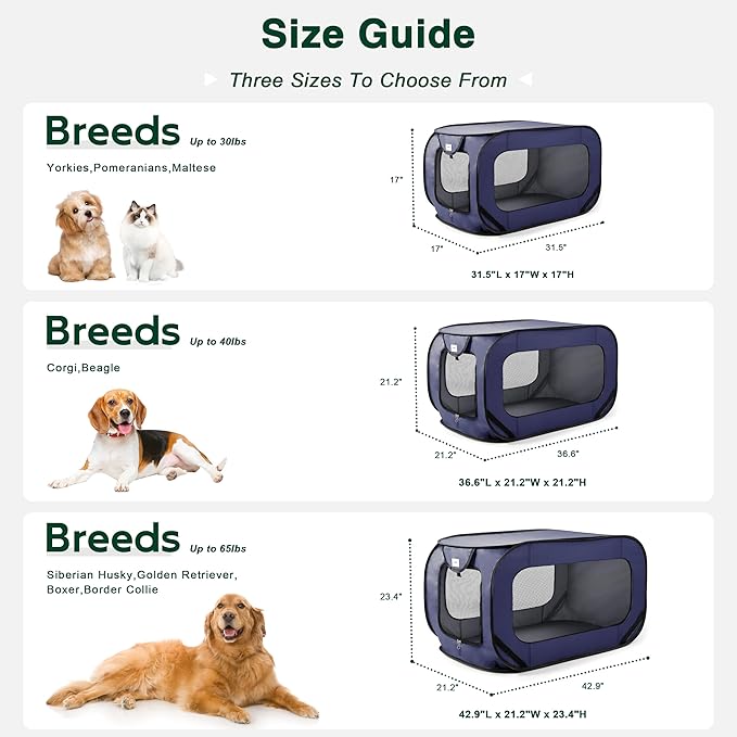 Love's cabin 36in Portable Large Dog Bed - Pop Up Dog Kennel, Indoor Outdoor Crate for Pets, Portable Car Seat Kennel, Cat Bed Collection, Dark Blue