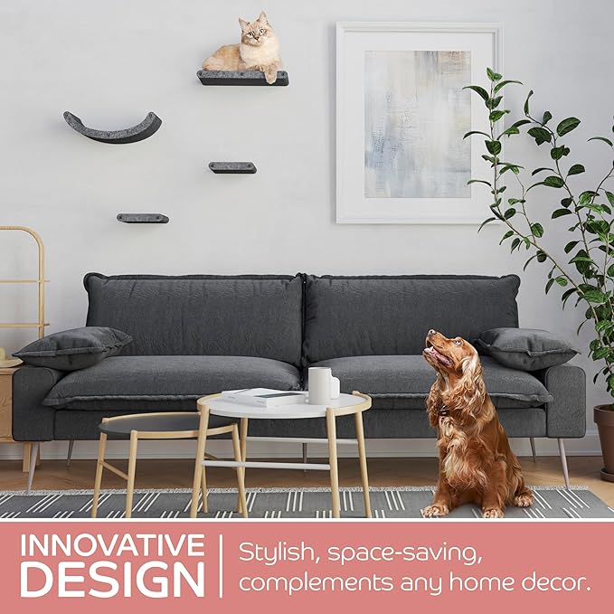 - INNOVATIVE AND SUSTAINABLE | Soft to the touch, firm in structure, and very tactile – cats love it! Our patent-pending cat shelf material is acoustic felt which is made from 100% Recycled PET bottles! It's built to withstand extended wear and tear.