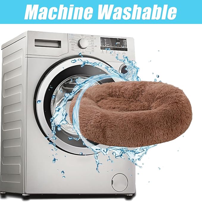 - 【Great Place For A Snooze】This donut dog bed is designed with a raised, cushioned outer furry ring and a plush, padded center, resembling a donuts. The raised sides provide support for your pet’s head and neck, while the soft center offers a warm and comfortable sleeping surface, allowing your pet to have a more comfortable sleep.