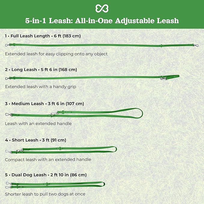 - Versatile Leash Design: Our heavy duty dog leash offers multiple hoop attachments. Choose between a long leash, medium leash, or short leash, or even use it as a hands free dog leash. The handle clip makes it easy to tie up your pet, providing versatility and convenience for every dog outing.