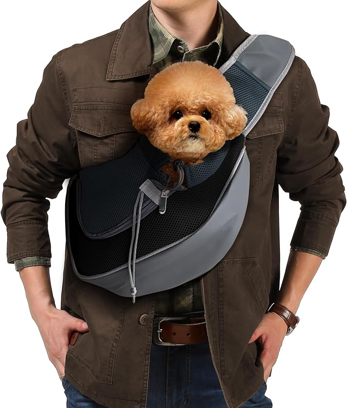- HAND-FREE DESIGN --- PUCEWMY dog carrying sling is perfect for traveling, walking, training, hiking gear, camping kit, vet visit, shopping, daily use and casual outdoor activities. The strap is adjustable, sturdy and durable. A mesh pocket on the shoulder strap to store pet stuff, such as treat, food, toy, or essential personal items such as phone and cards.
