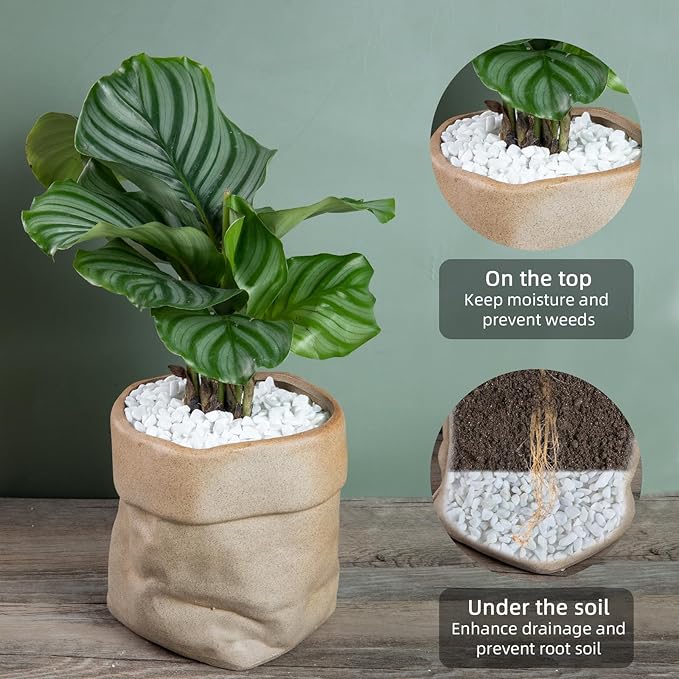 - 【Protect Plants】Ausluru silica gravel can protect your plants. They can absorbs excess heat and improve drainage, help with soil moisture retention in summer and insulate plants by keeping the cold away from their roots in winter.
