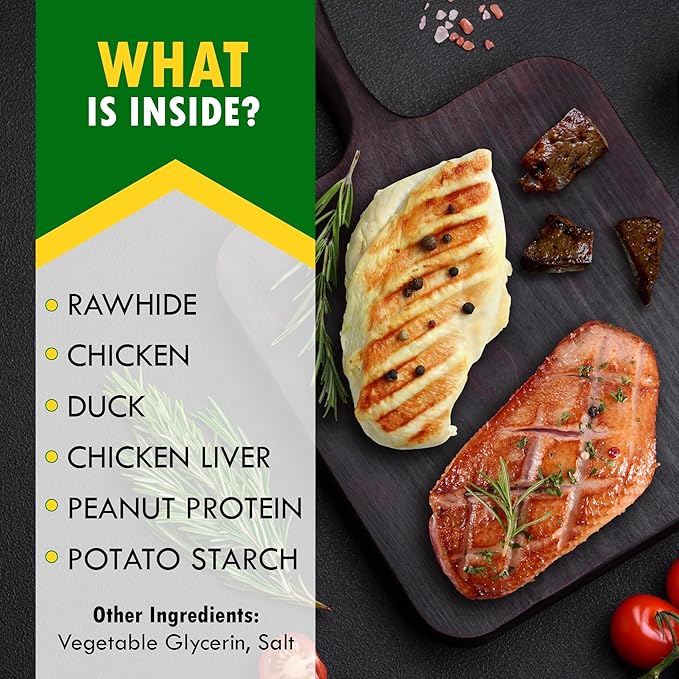 - ✅ PREMIUM KABOB TREATS: Elevate your dog's snacking experience with our gourmet kebab treats, crafted from human-grade ingredients. These rawhide sticks delights with duck, chicken liver are perfect for large and small breed dogs & puppies and aggressive chewers, providing a dental-friendly chew with every savory bite.