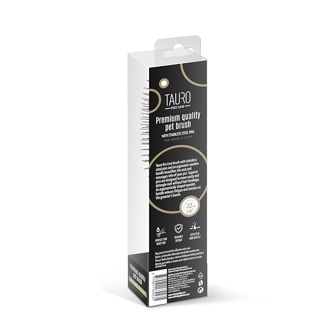 - COAT CARE - The Tauro Proline Wooden Massage Brush ensures a comfortable grooming experience for pets, thanks to its soft, flexible cushion. Each bristle is securely embedded to prevent fallout during brushing, making grooming safe and efficient.
