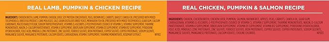 • Contains one (1) wet dog food variety pack containing twelve (12) 13-ounce cans of premium wet dog food that feature real chicken or lamb and pumpkin