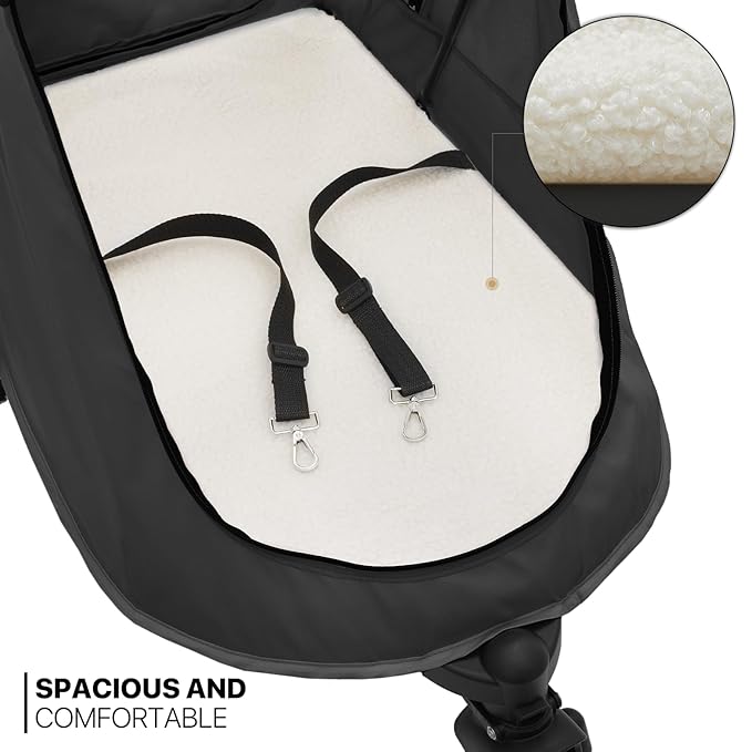 - Designed for Comfort - Our dog stroller's ergonomically curved handlebars with foam padding provide a soft and comfortable grip, minimizing wrist and forearm strain on long walks, and offering ease of maneuverability over diverse terrains.