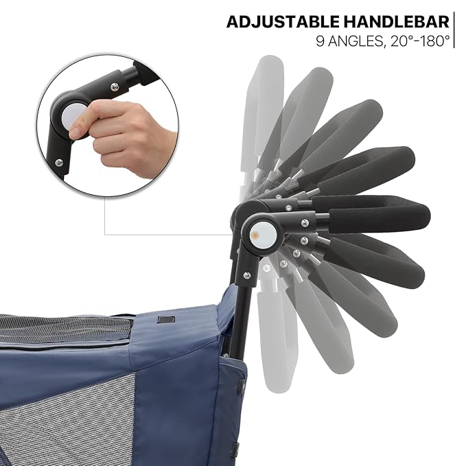 - Adjustable Multi-Position Handle - Experience the perfect blend of comfort and adaptability with our pet stroller's adjustable multi-position handle. Tailored to your height and preference, it ensures a comfortable strolling experience for pet owners of all sizes.