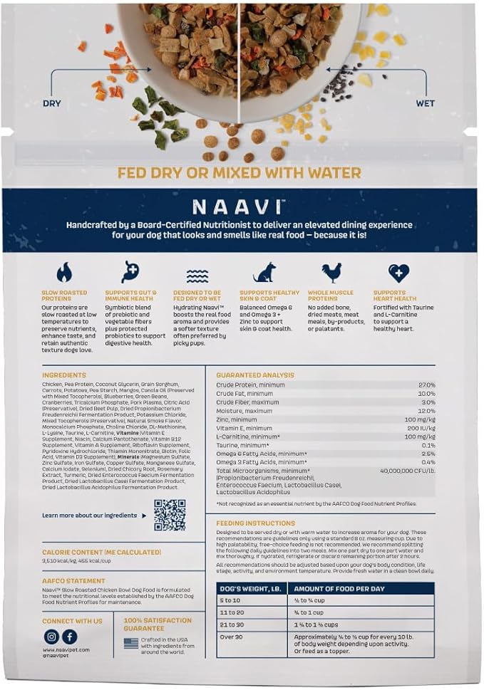 - Includes (2) 6oz bags of NAAVI's Chicken recipe