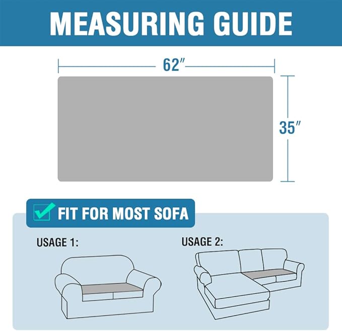 - GREAT FIT: Sold per PIECE. Size measures: 35" x 62". Suitable for almost american style furniture, especially for sofa and bed. In addition, it can also be used in places such as cars, window seats, children's playing floors, and dog cages that require it. Feature one-size-fits-most, kindly measure before ordering. More recommended for cloth sofas, there is greater friction that keeps it in place