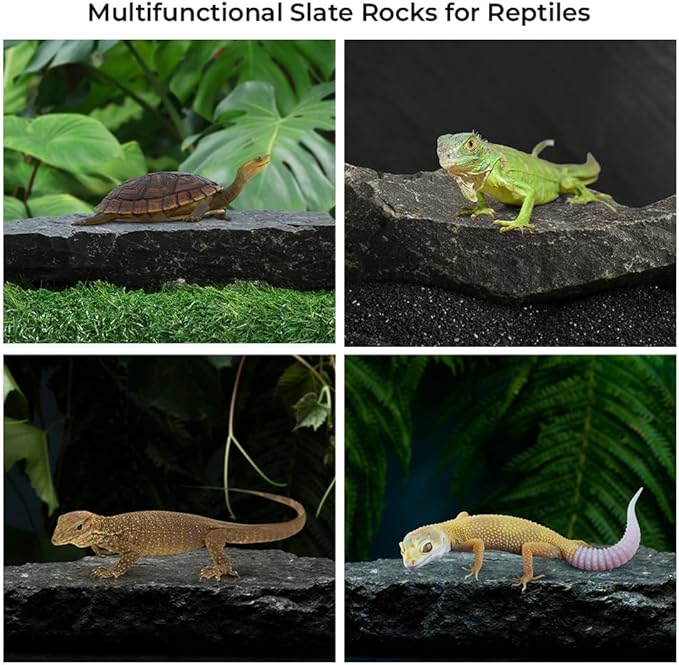 - VERSATILE USE: Typically flat in shape, aquarium slate rocks can be stacked in several interesting ways. The rock can be used to construct caves for fish to explore and hide in. The slate rock can create terraced landscapes that provide different levels for reptiles or fish to inhabit. Arrange slate pieces with other rocks and plants, and you can create a rock garden effect, adding depth and complexity to the aquascape.